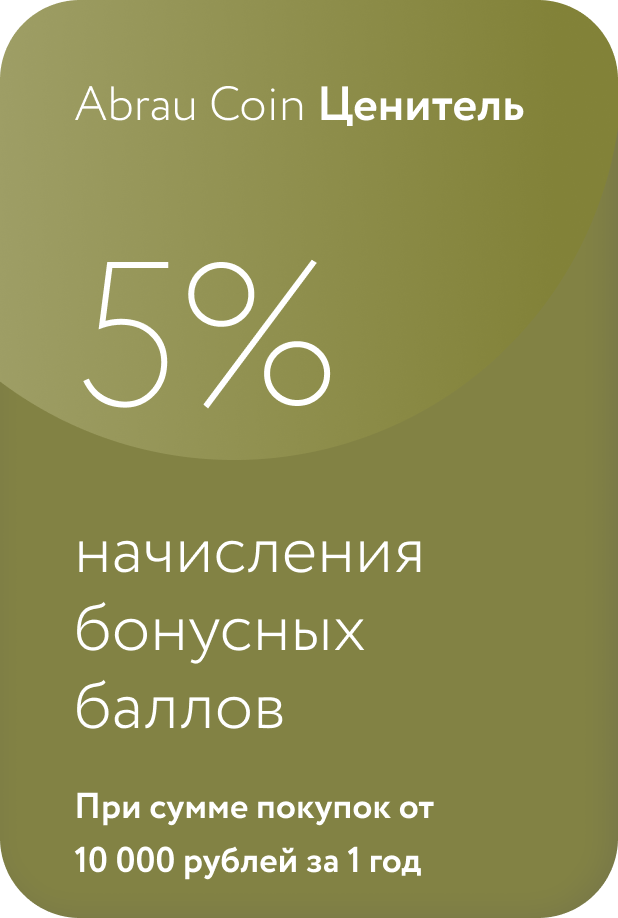 При совершении покупок в любой точке продаж или в интернет-магазине на на бонусный счет будут начисляться баллы в размере от 3% до 15% от суммы покупки. Процент начисления баллов зависит от вашего статуса в Abrau Coin.