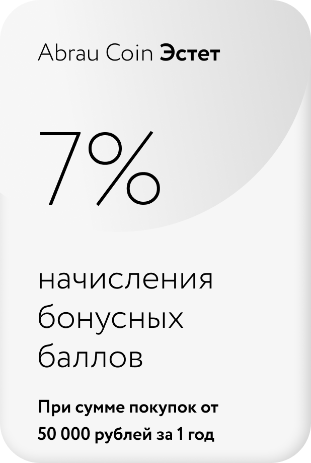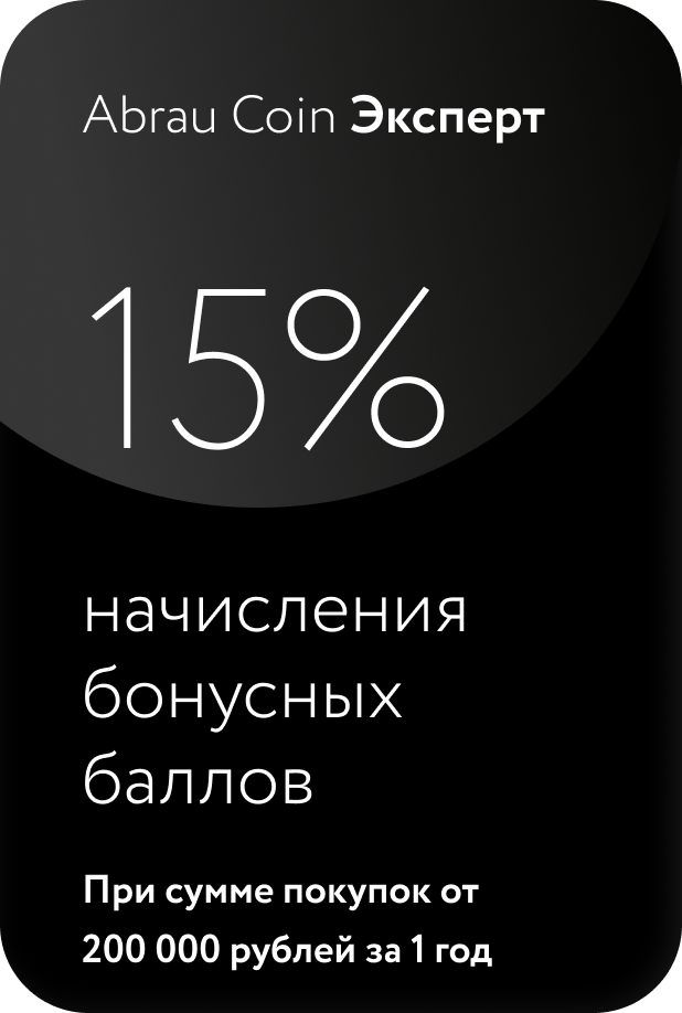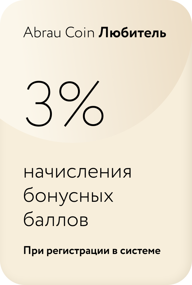 При совершении покупок в любой точке продаж или в интернет-магазине на на бонусный счет будут начисляться баллы в размере от 3% до 15% от суммы покупки. Процент начисления баллов зависит от вашего статуса в Abrau Coin.